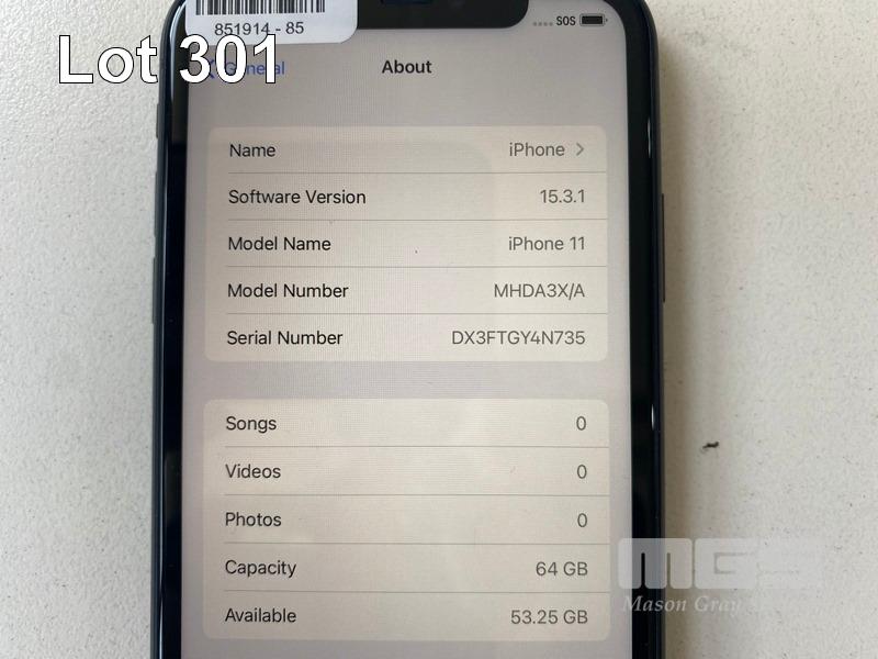 APPLE iPHONE 11, 64GB, BLACK, MODEL MHDA3X/A (NO CHARGER, NO CABLE) S/N:DX3FTGY4N735