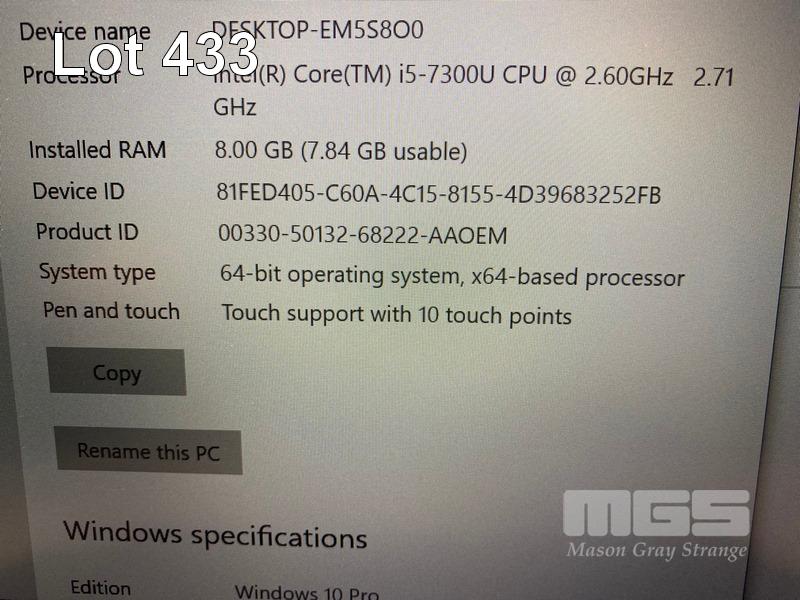 LAPTOP, LENOVO THINKPAD T470s, TYPE 20HG, CORE i5 7300U (7TH GEN) @ 2.6GHz, 8GB DDR4 RAM, 256GB NVMe M.2 SSD, 14" TOUCHSCREEN (1920x1080), INTEL HD VIDEO, Wi-Fi, BLUETOOTH, WINDOWS 10 PRO INSTALLED & POWER SUPPLY (NOTE: MINOR MARKS ON SCREEN) S/N:PC0SS7RV