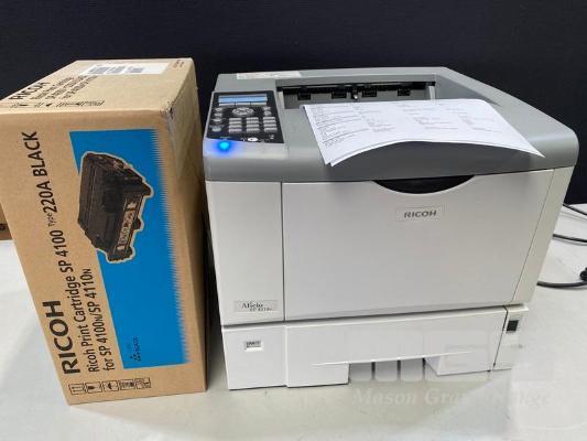 PRINTER, RICOH AFICIO SP 4310n LASER, USB, NETWORK, SPARE TONER, 2,092 PAGES (TEST PAGE ATTACHED) S/N:T1149360321