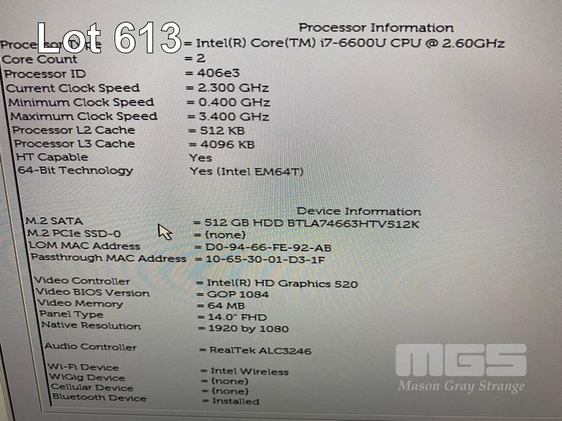 LAPTOP, DELL LATITUDE 7480, CORE i7 6600U (6TH GEN) @ 2.6GHz, 16GB DDR4 RAM, 512GB M.2 SSD, 14" WIDESCREEN (1920x1080), INTEL HD GRAPHICS 520, Wi-Fi, BLUETOOTH, WINDOWS 10 HOME INSTALLED & POWER SUPPLY S/N:65XPYM2