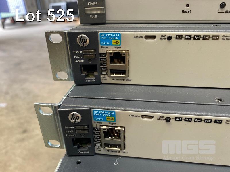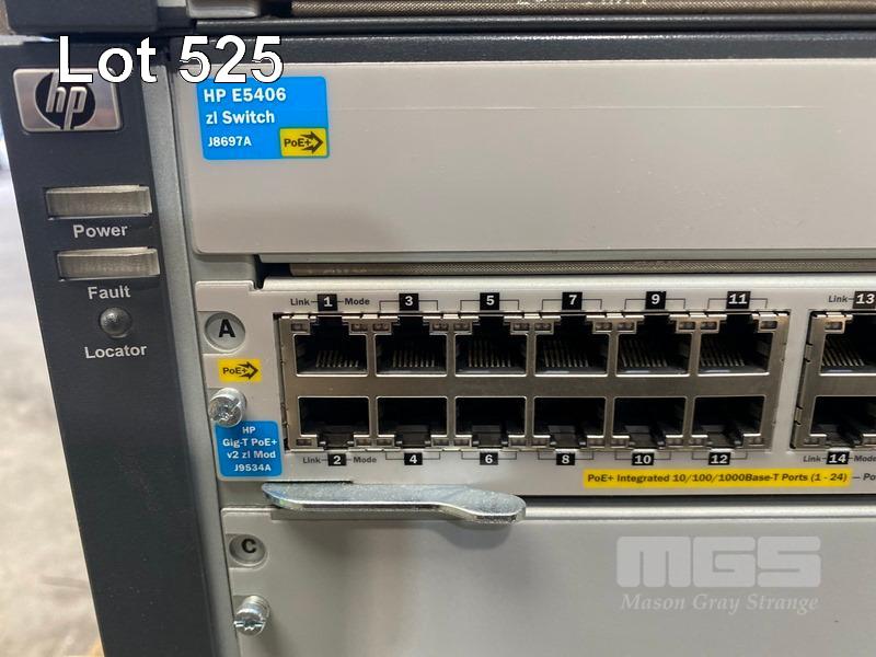 1 x HP PROCURVE SWITCH 2224, J4095A 2 x HP 2920-24G PoE+ SWITCHES, J9727A (NO POWER SUPPLIES) 3 x HP E5406 zl SWITCHES, J8697A (NO CABLES)