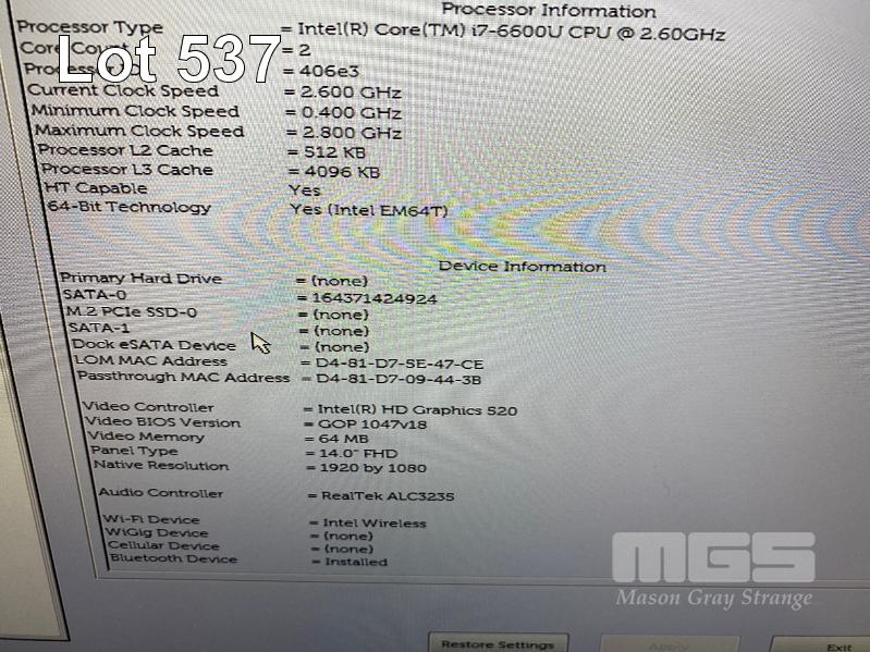 LAPTOP, DELL LATITUDE E5470, CORE i7 6600U (6TH GEN) @ 2.6GHz, 16GB DDR4 RAM, 256GB M.2 SSD, 14" WIDESCREEN (1920x1080), INTEL HD GRAPHICS 520, Wi-Fi, BLUETOOTH, WINDOWS 10 HOME INSTALLED, DOCKING STATION & POWER SUPPLY S/N:6GGRRF2
