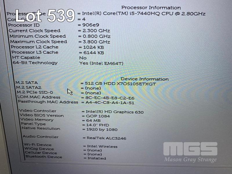 LAPTOP, DELL LATITUDE 5480, CORE i5 7440HQ (7TH GEN) @ 2.9GHz, 8GB DDR4 RAM, 512GB M.2 SSD, 14" WIDESCREEN (1920x1080), INTEL HD GRAPHICS 630, Wi-Fi, BLUETOOTH, WINDOWS 10 HOME INSTALLED & POWER SUPPLY S/N:9J5MHM2
