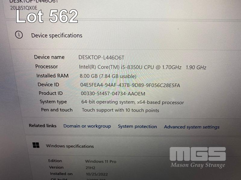 LAPTOP, LENOVO THINKPAD T480s, TYPE 20L8, CORE i5 8350U (8TH GEN) @ 1.7GHz, 8GB DDR4 RAM, 512GB NVMe M.2 SSD, 14" TOUCHSCREEN (1920x1080), INTEL HD VIDEO, Wi-Fi, BLUETOOTH, WINDOWS 11 PRO INSTALLED (NO USB-C POWER SUPPLY) (NOTE: MINOR MARKS ON SCREEN, BATTERY NOT CHARGING, WHITE SPOT SCREEN BLEMISHES) S/N:PC0XPEVA