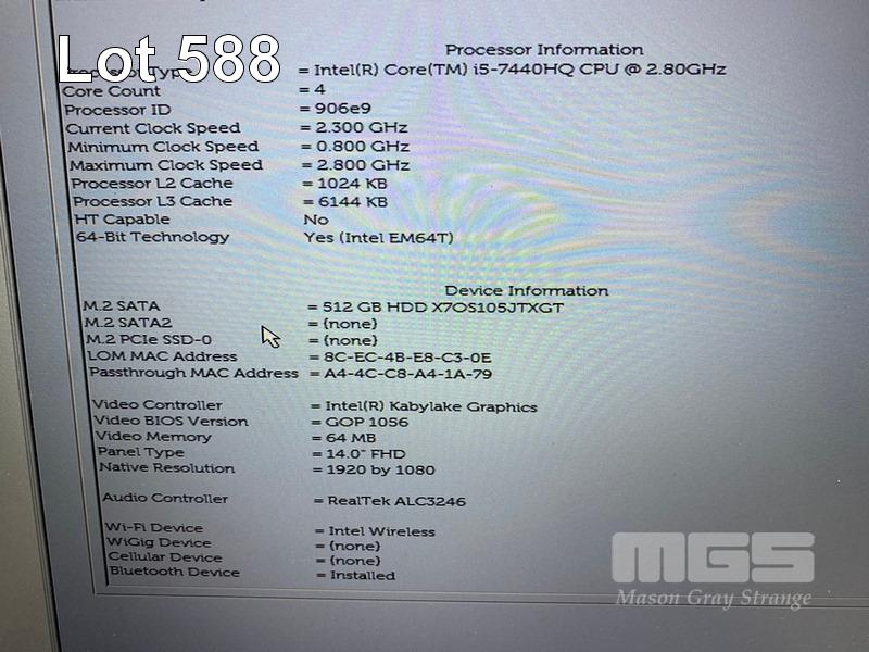 LAPTOP, DELL LATITUDE 5480, CORE i5 7440HQ (7TH GEN) @ 2.9GHz, 8GB DDR4 RAM, 512GB M.2 SSD, 14" WIDESCREEN (1920x1080), INTEL KABYLAKE GRAPHICS, Wi-Fi, BLUETOOTH, WINDOWS 10 HOME INSTALLED & POWER SUPPLY (NOTE: SWOLLEN BATTERY) S/N:DJ5MHM2