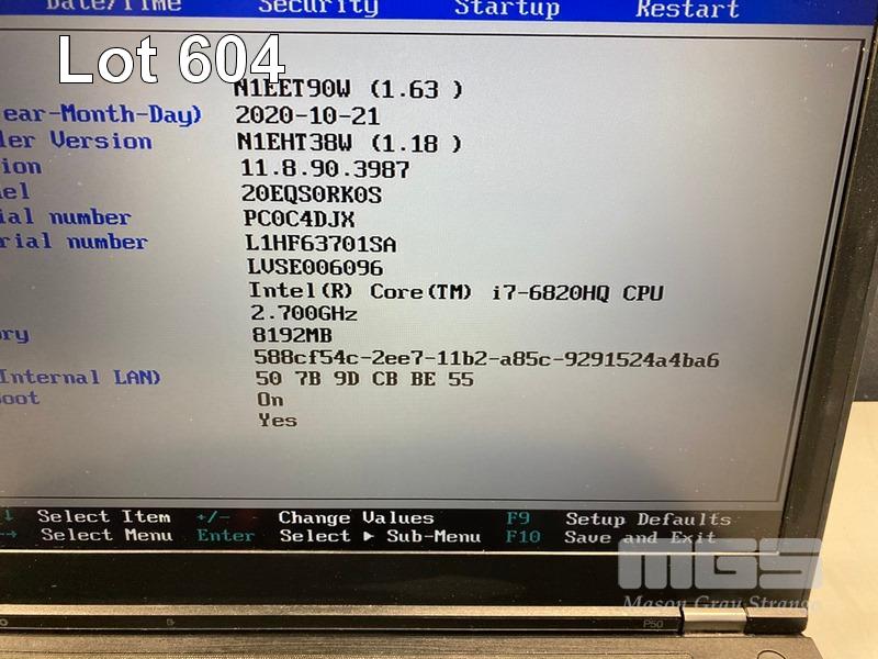 LAPTOP, LENOVO THINKPAD P50 MOBILE WORKSTATION, TYPE 20EQ, CORE i7 6820HQ (6TH GEN) @ 2.7GHz, 8GB DDR4 RAM, 256GB SSD, 15.6" WIDESCREEN (1920x1080), 4GB NVIDIA QUADRO M2000M VIDEO, Wi-Fi, BLUETOOTH, WINDOWS 10 PRO INSTALLED & POWER SUPPLY (NOTE: MARKS ON SCREEN, WHITE SPOT SCREEN BLEMISHES, 1 x USB FAULTY) S/N:PC0C4DJX