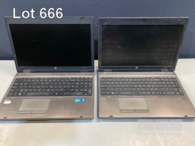 6 x LAPTOPS INC HP PROBOOK 6560b, CORE i5 2410M @ 2.3GHz, 8GB RAM, 500GB HDD (SPOTS ON SCREEN) HP PROBOOK 6570b, CORE i5 3320M @ 2.6GHz, 8GB RAM, 500GB HDD (DAMAGE TO CASING) HP PROBOOK 8560w, 8GB RAM, NO HDD, NO BATTERY, NO DVD DRIVE COVER (FAULTY) HP PROBOOK 2570p, CORE i5 3320M @ 2.6GHz, 4GB RAM, NO HDD HP PROBOOK 6570b, 2GB RAM, NO HDD (DAMAGED SCREEN) HP PROBOOK 6550b, 2GB RAM, NO HDD (FAULTY) (NO POWER SUPPLIES) S/N:5CB20509HP, 5CB30918MV, 5CB21210GN, CNU345B5J5, 5CB3200358, CNU11927KL
