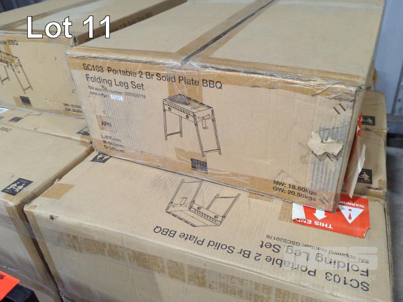 PORTABLE 2-BURNER SOLID PLATE GAS BBQ WITH FOLDING LEGS. NEW IN BOX. RRP $199