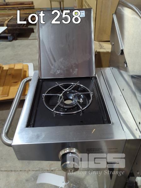 GRANDHALL PREMIUM 6S STAINLESS STEEL COVERED COOKER GAS BBQ 6-BURNER WITH SIDE BURNER, BACKBURNER & CABINET TROLLEY. NEW IN BOX (2 x BOXES). RRP $1,799