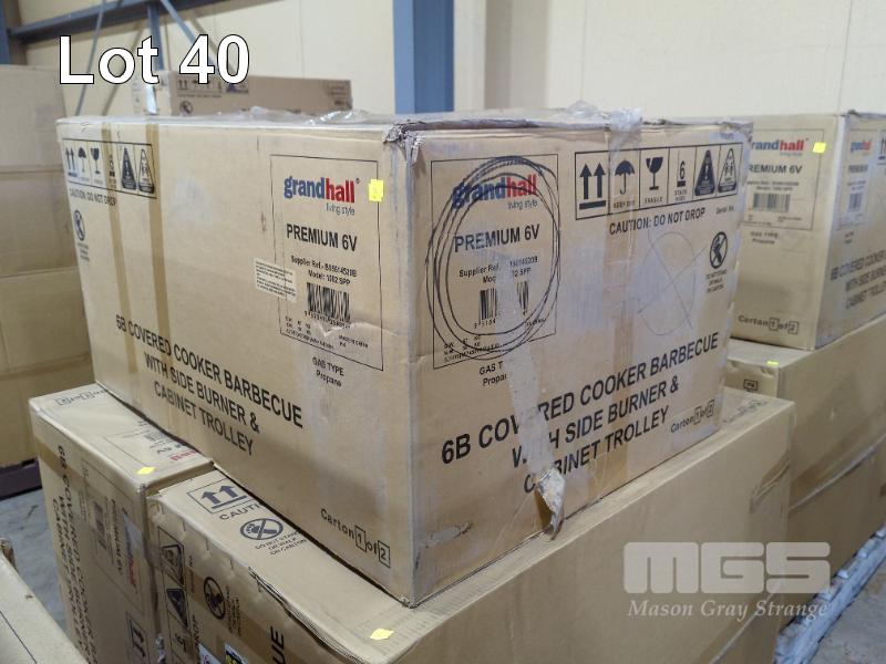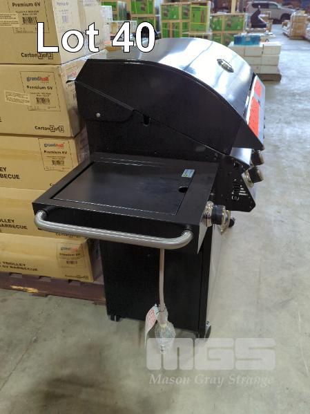 GRANDHALL PREMIUM 6V GLOSS BLACK COVERED COOKER GAS BBQ. 6-BURNER WITH SIDE BURNER & CABINET TROLLEY. NEW IN BOX (2 x BOXES). RRP $799
