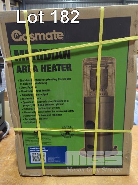 GASMATE MERIDIAN AREA HEATER. ADJUSTABLE 40 MJ/h HEATER. MODEL: AH2069 COLOUR: STAINLESS STEEL RRP $299