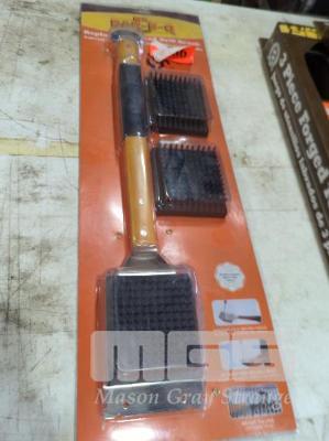 MR. BAR-B-Q "ORIGINAL'' REPLACEABLE HEAD METAL BBQ GRILL BRUSH WITH 2 X REPLACEMENT BRUSH HEADS.