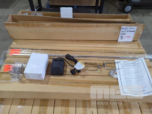 ELECTRIC STAINLESS STEEL ROTISSERIE KIT 240V A.C. MOTOR 1095 MM SPIT ROD, 2 X SKEWER FORKS, COLLAR, MOUNTING BRACKETS ETC. * SUIT 6-BURNER BBQ * RRP $199
