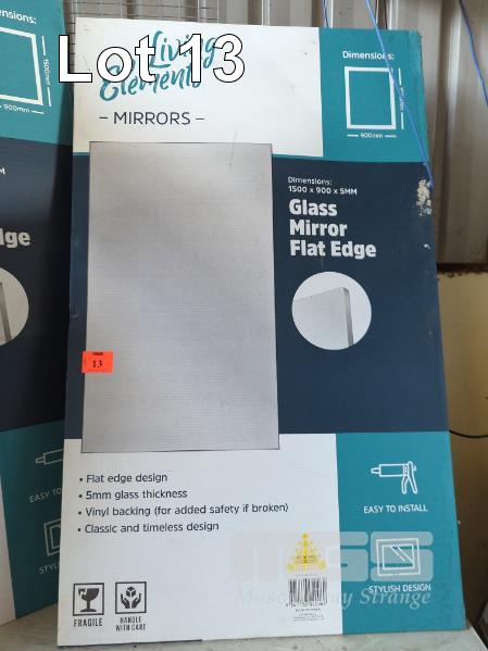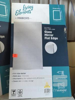LARGE GLASS MIRROR, FLAT EDGE - 1500 X 900 X 5 MM. NEW IN BOX.