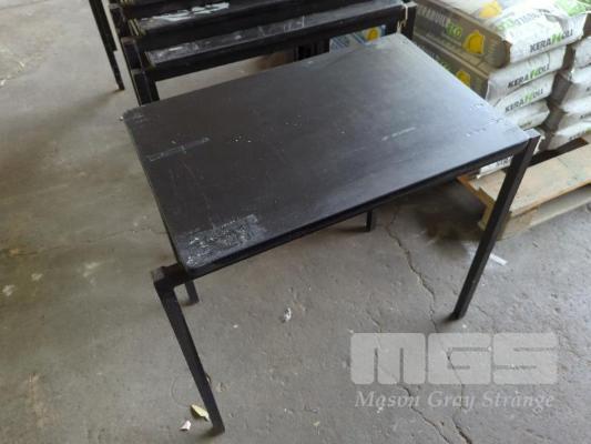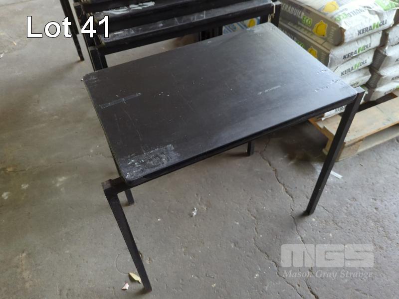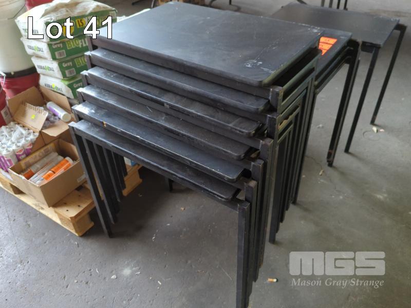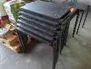 10 X STACKABLE EXAM DESKS - STEEL FRAME, LAMINATE TOPS ALL IN BLACK.