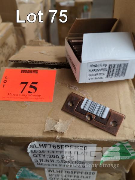 QUANTITY OF TRIO-WARLAN HIRLINE QUICK FIX HINGES - 65 X 25 X 1.4 MM. FIXED PIN IN FLORENTINE BRONZE. 6 X TRADE PACKS OF 200 PIECES EACH.