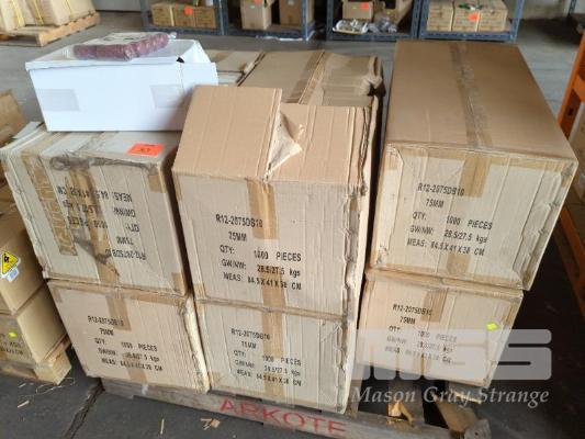 LARGE QUANTITY OF TRIO 75 MM PLASTIC DOOR STOPS IN PACKS OF 10 EACH - 6 X CARTONS OF 1,000 PIECES EACH (1 X PALLET).