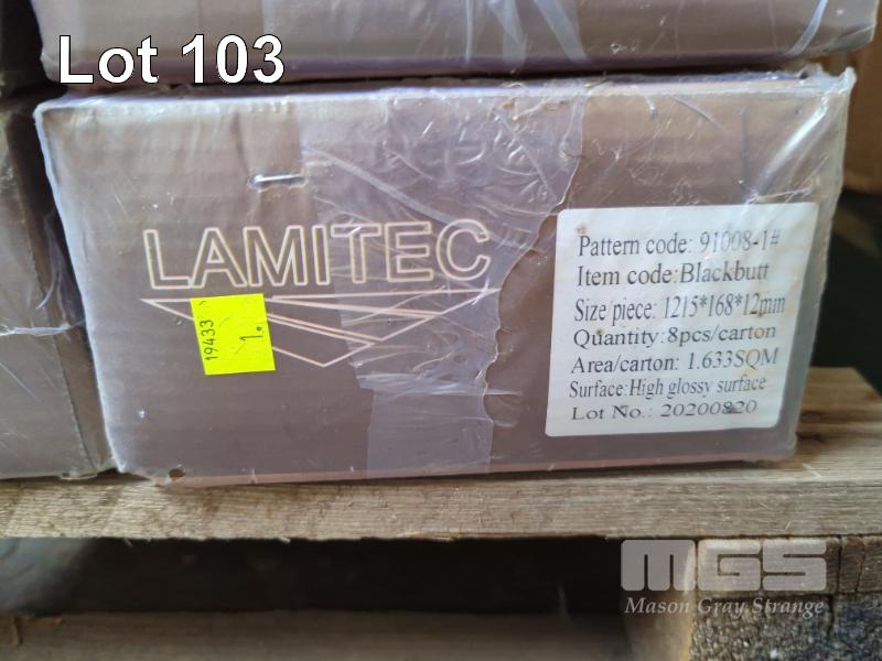 LAMITEC TIMBER LAMINATE FLOORING COLOUR: BLACKBUTT, HIGH GLOSS 1215 x 168 x 12mm 8 PIECES/CARTON AREA/CARTON: 1.633sqm PATTERN CODE: 91008-1 10 x CARTONS