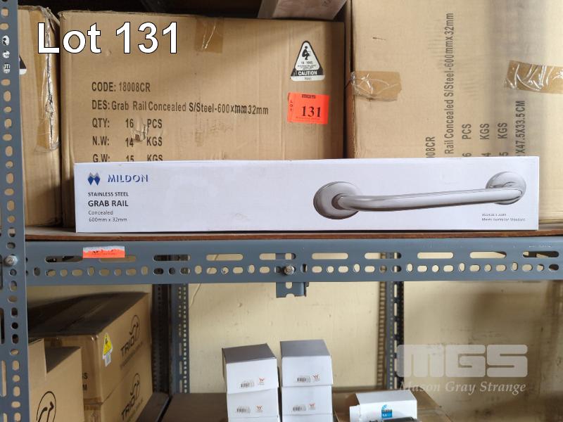 MILDON KNURLED STAINLESS STEEL GRAB RAILS. CONCEALED MOUNT - 600 X 32 MM. INDIVIDUALLY BOX PACKED (1808CR). 48 PIECES APPROX.