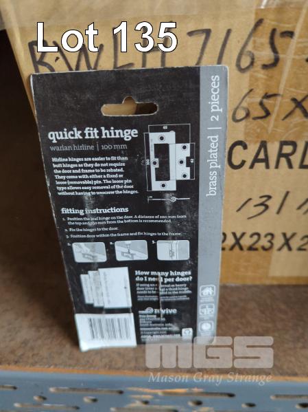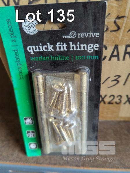 DOOR HINGES, WARLAN HIRLINE QUICK FIT IN BLISTER PACKS, 2 HINGES PER PACK - 100 x 65 x 2.0 MM, BRASS PLATED. 200 PACKS APPROX.