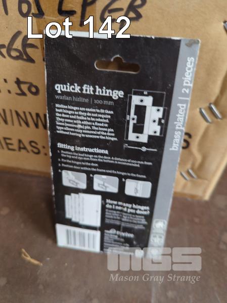 DOOR HINGES, WARLAN HIRLINE QUICK FIT IN BLISTER PACKS, 2 HINGES PER PACK - 100 x 65 x 2.0 MM, BRASS PLATED. 200 PACKS APPROX.