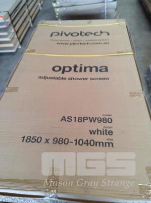 PIVOTECH ADJUSTABLE SHOWER SCREEN, WHITE, 1850 x 980 x 1040mm, NEW OLD STOCK IN BOX