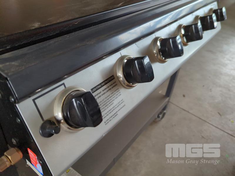 GRILLMASTER MOBILE FLAT TOP GAS BBQ. 6-BURNER WITH TROLLEY. NEW IN BOX. RRP $699