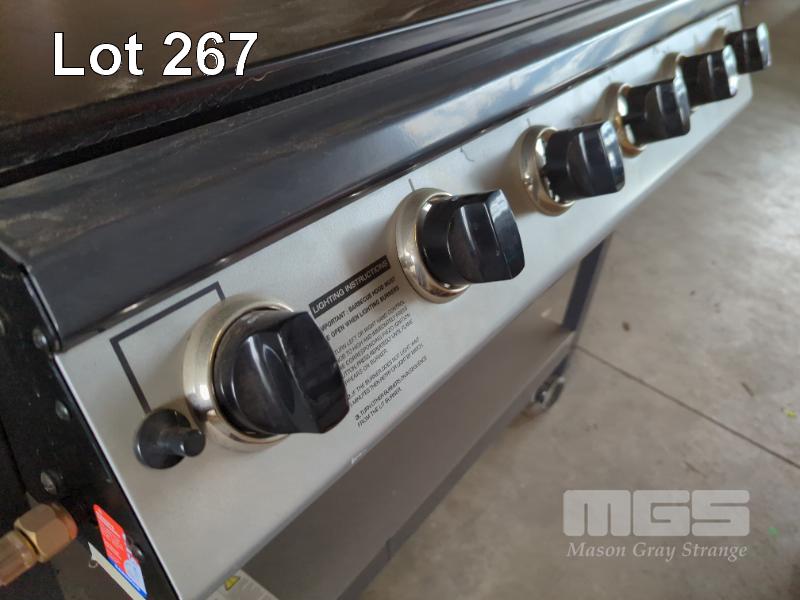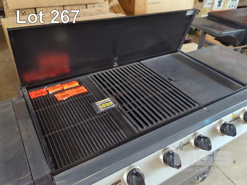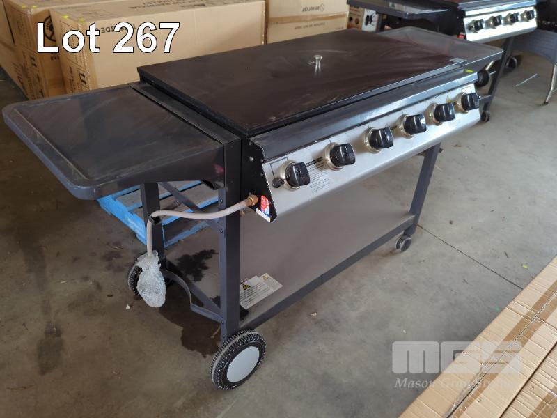 GRILLMASTER MOBILE FLAT TOP GAS BBQ. 6-BURNER WITH TROLLEY. NEW IN BOX. RRP $699