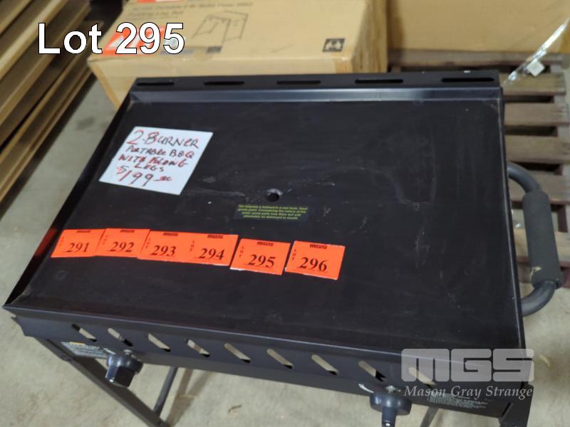 PORTABLE 2-BURNER SOLID PLATE GAS BBQ WITH FOLDING LEGS. NEW IN BOX. RRP $199