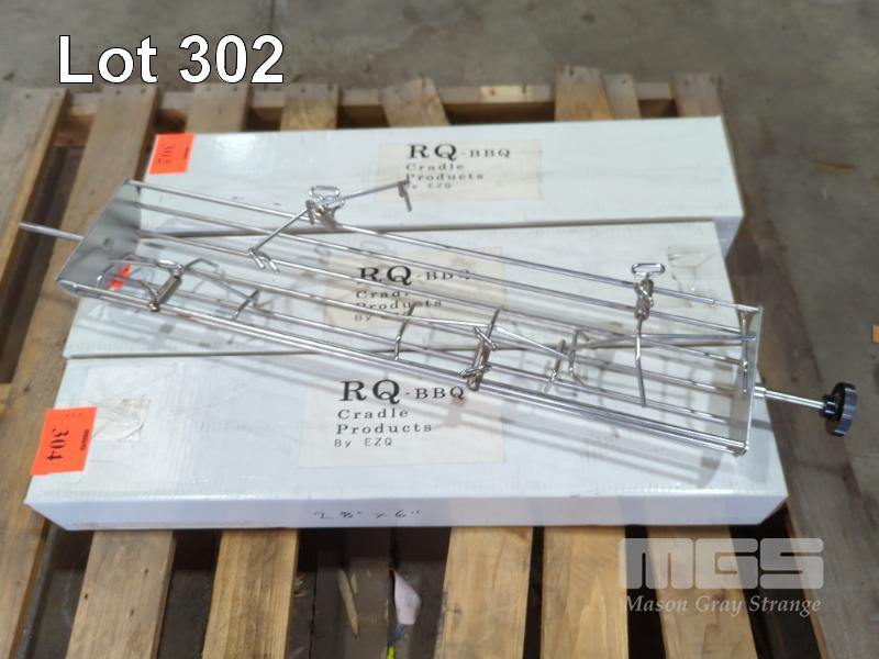 EZQ ROTISSERIE CRADLE 28 X 6" STAINLESS STEEL ROTISSERIE CRADLE & SKEWER CLAMPS. * E-Z QUE ROTISSERIE BASKET SYSTEM * * NO MOTOR * RRP $269.90