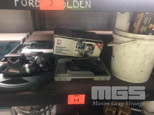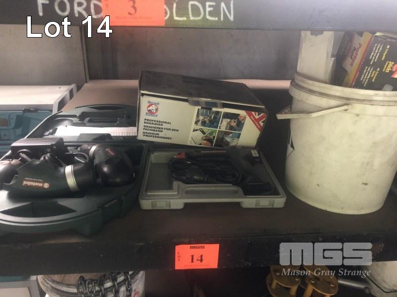 2 x HOT GLUE GUNS, 240V WITH GLUES, RECORD ENGRAVER, 240V & METABO POWERGRIP CORDLESS DRILL KIT