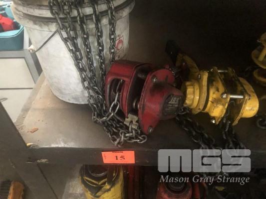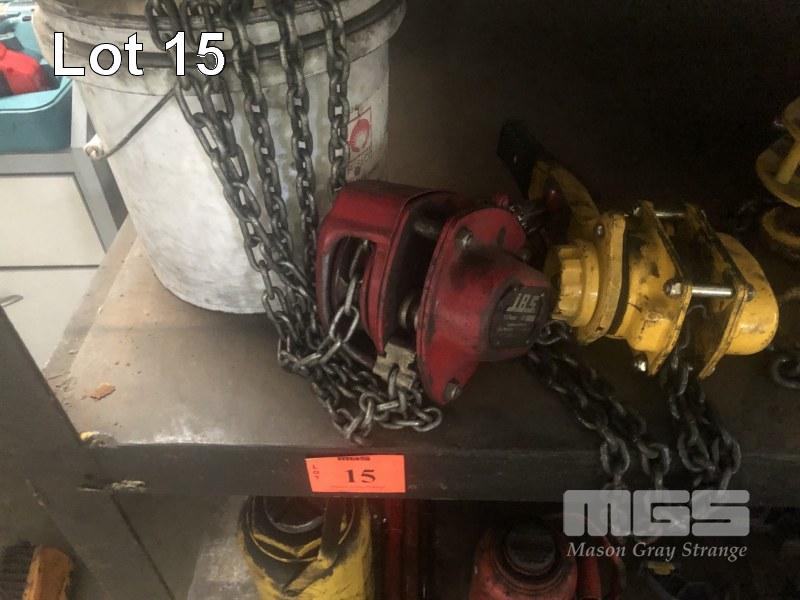 CHAIN BLOCK, JBS 1/2 TONNE & GORILLA 1 TONNE COME-ALONG 1.5m LIFT