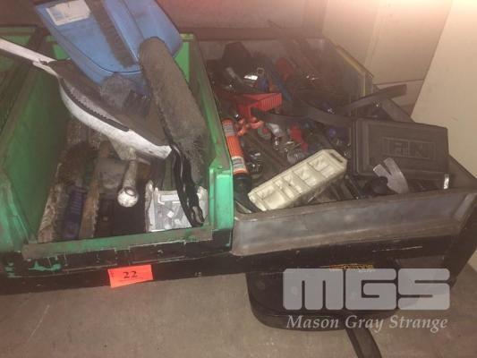 WIRE BRUSHES, FILTER STRAP, CROW BARS, PUNCH BARS, PIPE WRENCH, SHIFTERS, 2 x TUBS