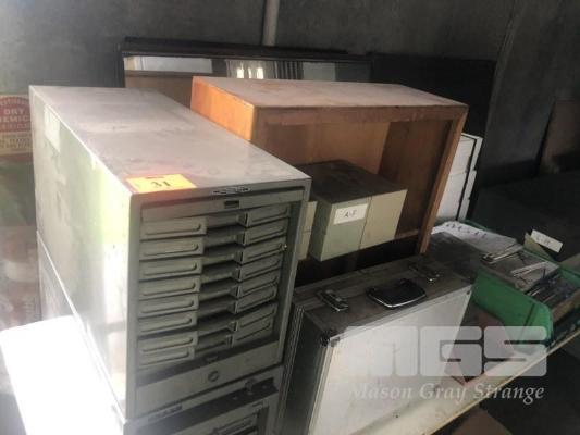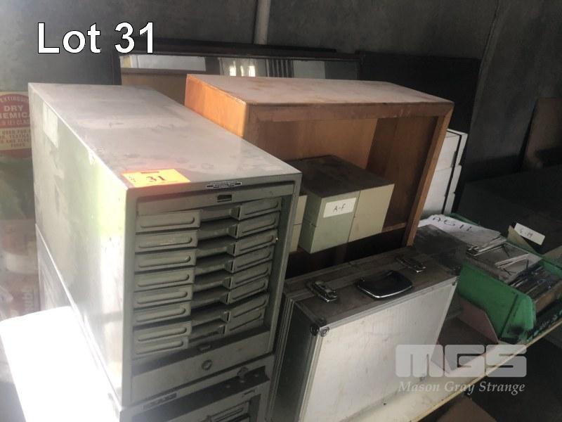 2 x STEEL CARD FILES, ALUMINIUM CASE, CARD FILE PLASTIC & FOLD AWAY TABLE