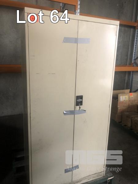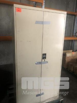 STEEL STOCK CABINET, 2 DOOR, 2000 x 900mm APPROX & STEEL 4 DRAWER FILING CABINET