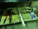 2 x STILSONS, BOLT CUTTER, PAINT STIRRER, PIPE CHAIN CLAMP, APPLICATION GUNS, ASSORTED SEALANTS & GREASE