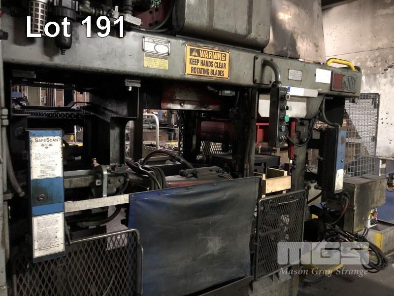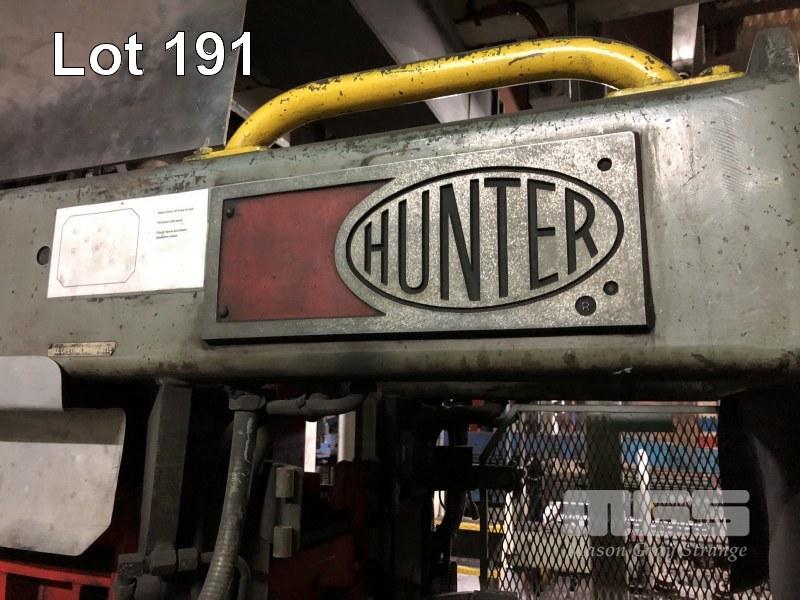 HUNTER AUTOMATED MACHINERY CORPORATION FLASKLESS MOULDING MACHINE, PRODUCES 14 x 19 x 10 INCH MOULD, MODEL: HMP10C, SERIAL: 82P914, 415v, 180 MOULDS PER HOUR AUSTVEYORS, HOPPER & CONVEYOR BELT SYSTEM, HOPPER: 2100mm (L) 450mm (W), 1700mm (H) CONVEYOR: 3000mm (L) 550mm (W) (NOTE: INSPECTION REQUIRED, UNIT IS ON MEZZANINE)