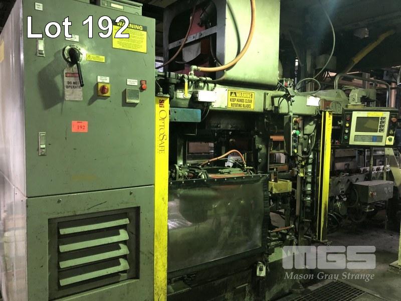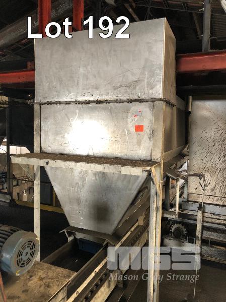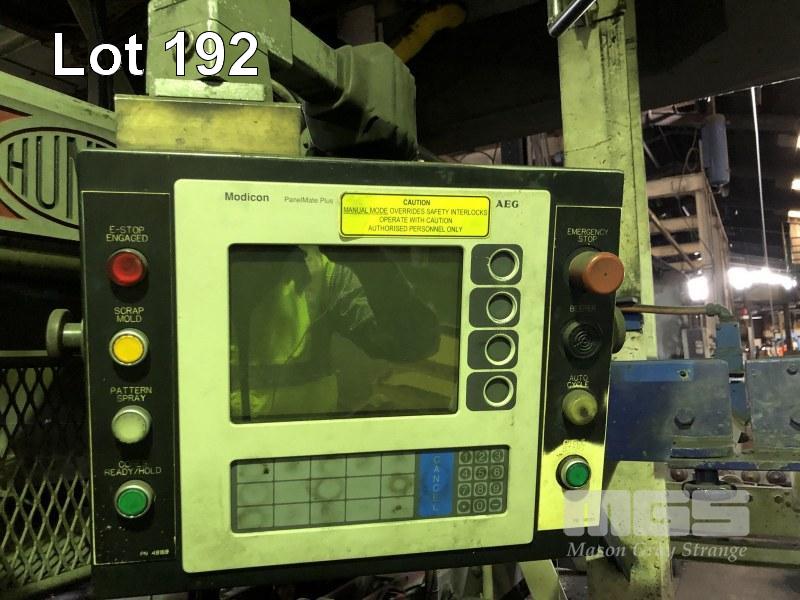 HUNTER AUTOMATED MACHINERY CORPORATION FLASKLESS MOULDING MACHINE, PRODUCES 14 x 19 x 10 INCH MOULD, MODEL: HMP10E, SERIAL: 95MPE1092, 415v WITH OPTOSAFE RED EYE SAFETY BEAMS, PRODUCES 180 MOULDS PER HOUR PLUS STAINLESS STEEL HOPPER SYSTEM WITH FEED CONVEYOR, 1850mm (L) 1230mm (W) 1700mm (H), BELT: 3200 x 450mm, (NOTE: INSPECTION REQUIRED, UNIT IS ON MEZZANINE)