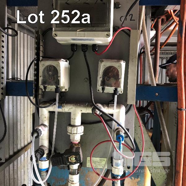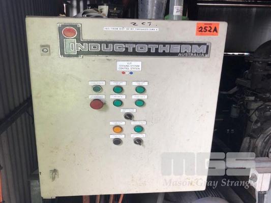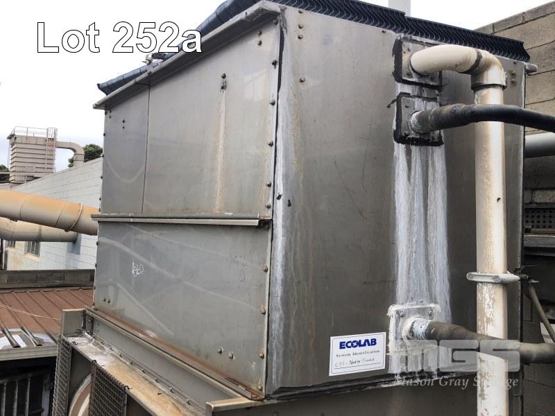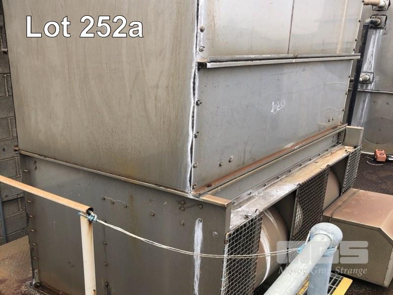 COMPLETE INDUCTOTHERM COOLING TOWER WITH INDUCTOTHERM CONTROL BOX, DUAL FAN STAINLESS STEEL TANK, 1800 x 1000 x 1400mm, WITH ECOLAB DOSING SYSTEM, INCLUDES FLOW PUMPS & PIPING
