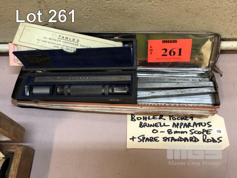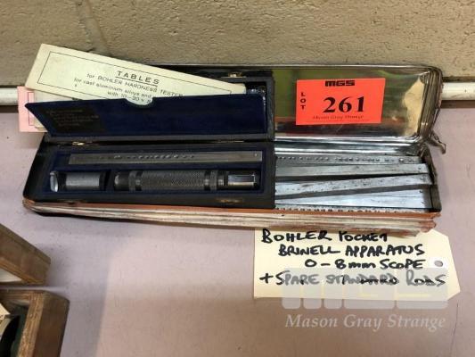 BOHLER POCKET BRINELL APPARATUS, 0-8mm SCOPE, PLUS SPARE STANDARD RODS & BOOKLET, IN CASE
