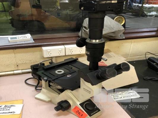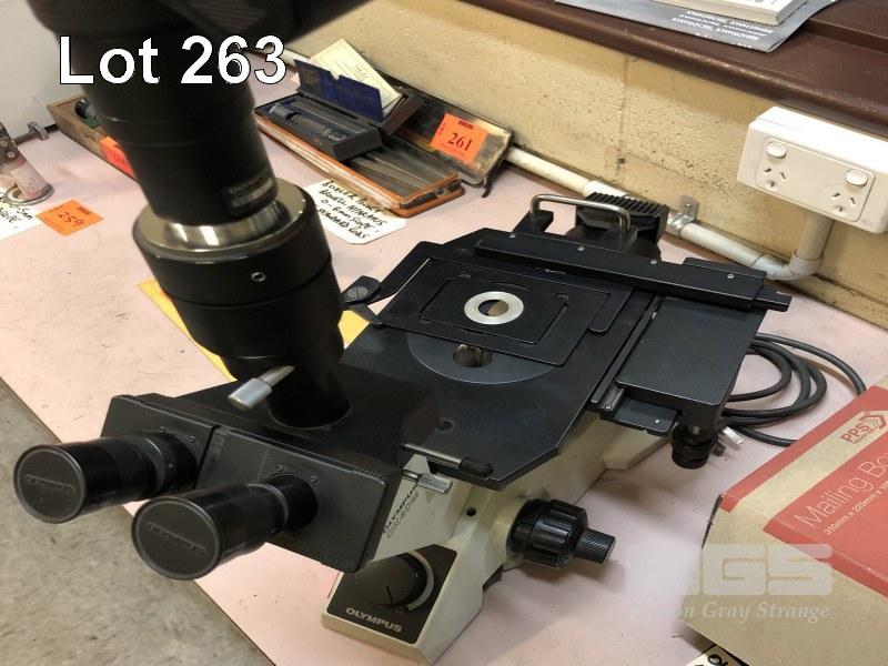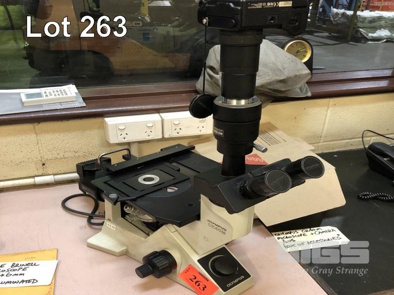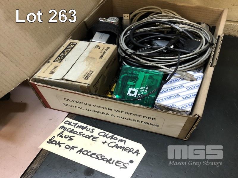 OLYMPUS MICROSCOPE, MODEL: CK40m, PLUS CAMERA & BOX OF ACCESSORIES