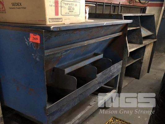 SMALL MOBILE HOPPER BIN, 1250 x 630 x 1350mm (H) WITH STEEL STOCK RACK, MULTI SHELF, 1300 x 600 x 1400mm