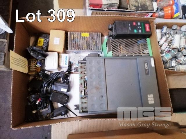 PALLET OF ELECTRICAL FITTINGS, CIRCUIT BREAKERS, PLUS SWITCHES, FUSES, PLCS ETC. PLUS VSDS, SWITCHMODE POWER SUPPLIES AND AC ADAPTERS.