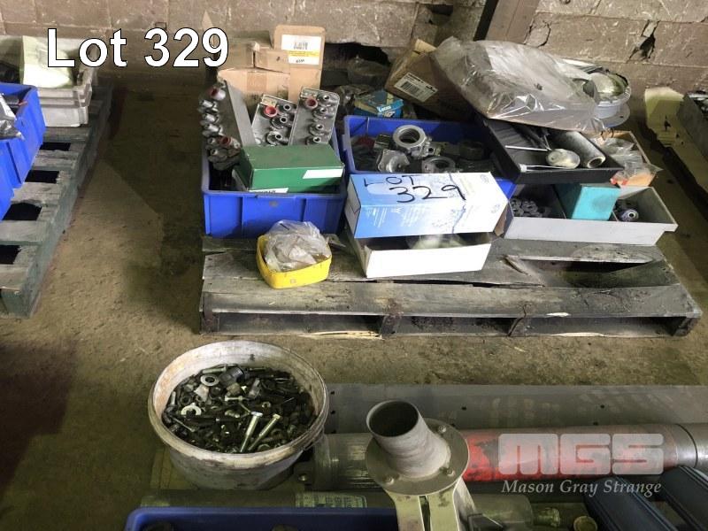 2 x PALLETS OF ASSORTED HARDWARE, STAINLESS STEEL HOSE CLAMPS, DRIVE CHAIN, BLOWER, FILTERS ETC. PLUS COLLECTION OF DUST COLLECTOR MULTI-CHANNEL PULSE TIMERS, MAGNEHELIC AND MAGNASENSE GAUGES.