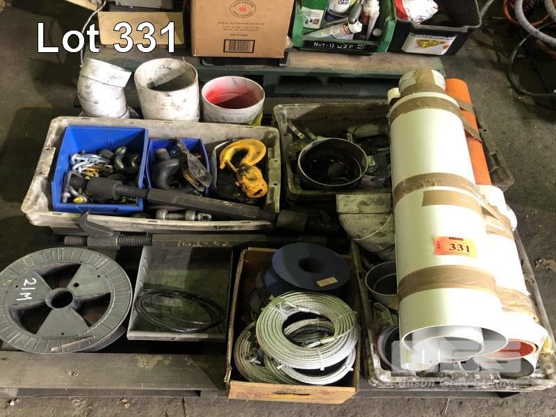 2 x PALLETS ASSORTED HARDWARE, AEROSOL PAINTS, GLUES, NUTS, BOLTS, WIRE ROPE, PVC FITTINGS ETC.