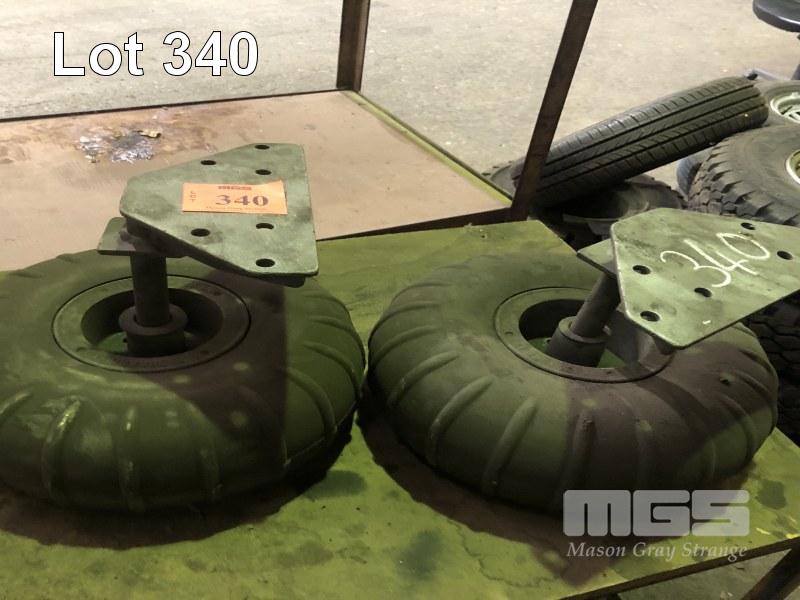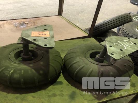 PAIR OF 300mm WHEELS ON BRACKETS, UNKNOWN