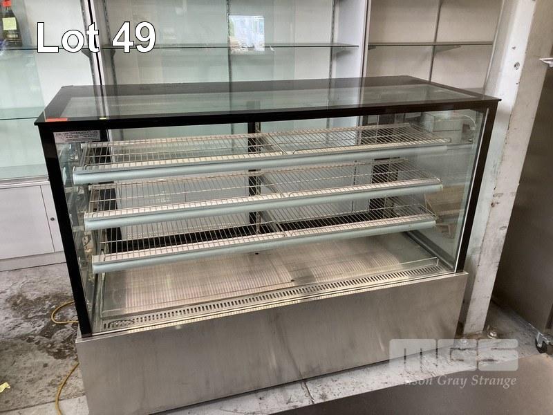 SQUARE GLASS CAKE DISPLAY, FED MOD: SL88OV 180cm, SELF CONTAINED UNIT, 240V (NOTE: SOME MINOR CHIPS)