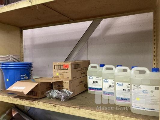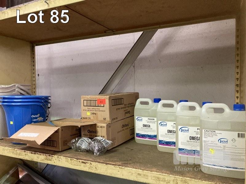 4 x 5 LITRE BOTTLES DETERGENTS, BUCKETS, STAINLESS STEEL SCOURERS, ETC