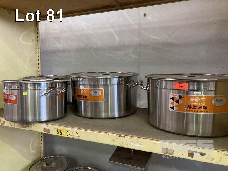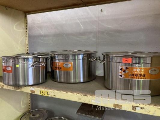 4 x STAINLESS STEEL STOCK POTS, 40 & 50cm