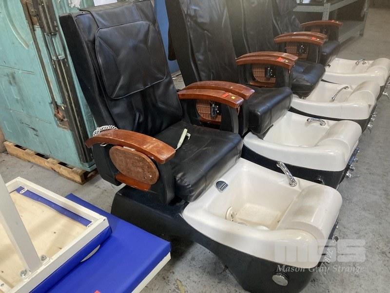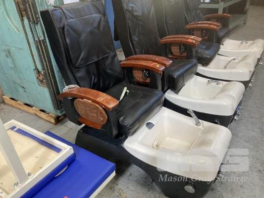 PEDICURE SPA CHAIR, BLACK VINYL TIMBER ARMREST WITH REMOTE